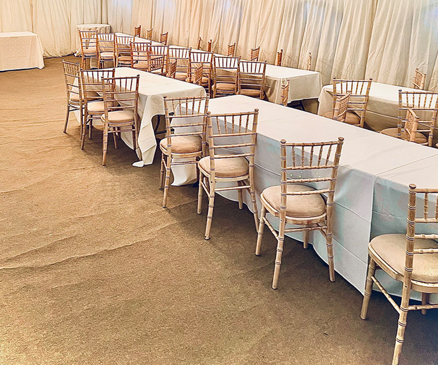 - 12 – 20 Fold Up Chairs (Depending on size of marquee – additional Fold Up Chair £2 each)